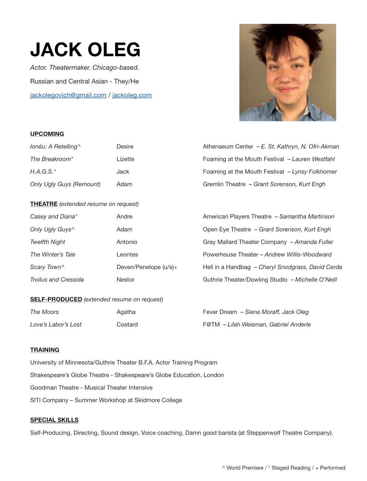 My first experiences in theater-making began by playing out imaginary situations in my backyard, and it became clear to me that I was an actor when I started to rehearse the moments I was playing by going back and working them to make them more specific and fun to do. This way of thinking started around age six, and I haven’t looked back since.
